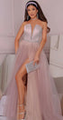 MAXI SKIRT AND CROP TOP SET CASSIE SATIN TULLE LAVENDER
