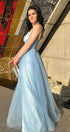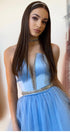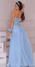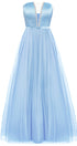 MAXI SKIRT AND CROP TOP SET CASSIE SATIN TULLE LIGHT BLUE