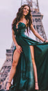 MAXI SKIRT AND CROP TOP SET ILONA LACE SATIN DARK GREEN