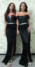MAXI SKIRT AND CROP TOP SET IVEY GLITTER LACE SATIN BLACK