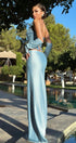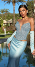 MAXI SKIRT AND CROP TOP SET LENORA 3 PARTS SEQUIN SATIN LIGHT BLUE