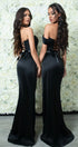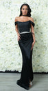 MAXI SKIRT AND CROP TOP SET NICOLE GLITTER LACE SATIN BLACK