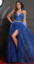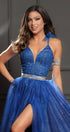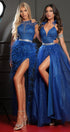 MAXI SKIRT AND CROP TOP SET RENE GLITTER LACE GLITTER TULLE COBALT BLUE