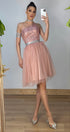 MIDI SKIRT AND CROP TOP SET ANGELA GLITTER LACE TULLE POWDER PINK