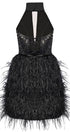 MINI DRESS FEYA SEQUIN FEATHERS BLACK