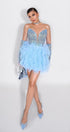 MINI SKIRT AND CROP TOP SET AMORE 3 PARTS SEQUIN TULLE LIGHT BLUE