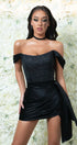 MINI SKIRT AND CROP TOP SET ERIN GLITTER LACE SATIN BLACK