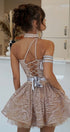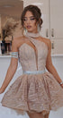 MINI SKIRT AND CROP TOP SET SANDRA GLITTER LACE GOLDEN