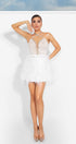 MINI SKIRT AND CROP TOP SET STORMI 2 PARTS GLITTER LACE FEATHERS WHITE AND NUDE