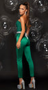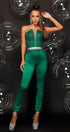 MAXI CROP TOP AND PANTS SET INDIA GLITTER LACE SATIN DARK GREEN