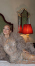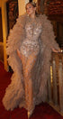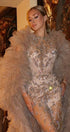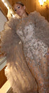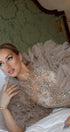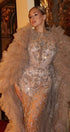 MAXI DRESS AND CLOAK CAROLINE RHINESTONE GLITTER TULLE CHAMPAGNE