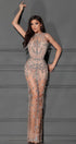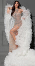 MAXI DRESS MET QUEEN RHINESTONE SATIN CHAMPAGNE AND WHITE