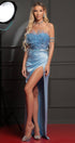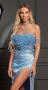 MAXI SKIRT AND CROP TOP SET ADDISON GLITTER LACE FEATHERS SATIN LIGHT BLUE