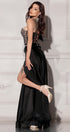 MAXI SKIRT AND CROP TOP SET ANNA SATIN GLITTER LACE BLACK AND NUDE