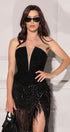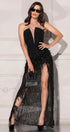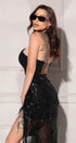 MAXI SKIRT AND CROP TOP SET ASTRID TRICOT LAME SEQUIN BLACK