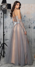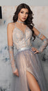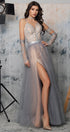 MAXI SKIRT AND CROP TOP SET CANDICE GLITTER LACE RHINESTONE GLITTER TULLE SILVER AND NUDE
