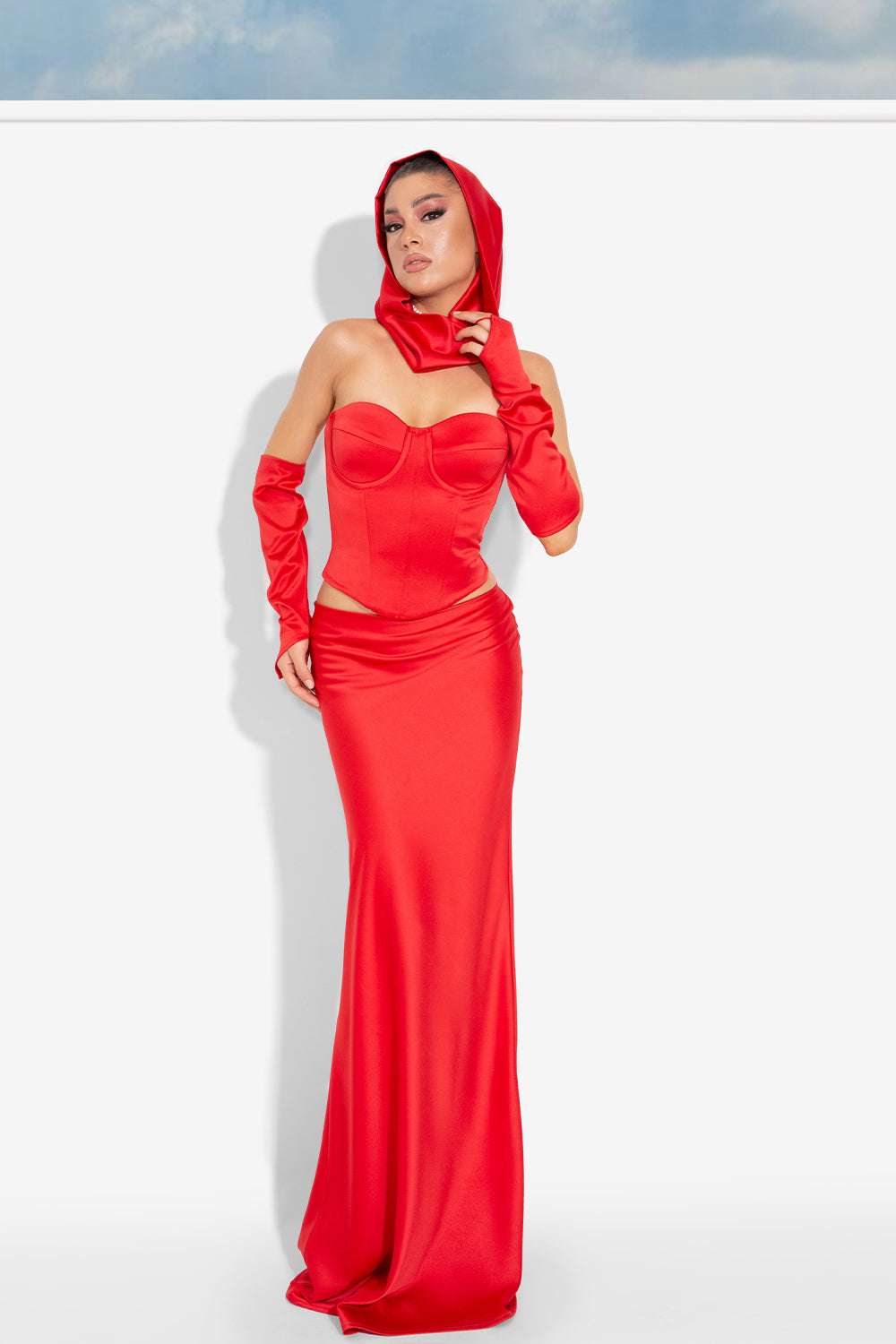 MAXI SKIRT AND CROP TOP SET EZRA SATIN RED