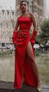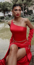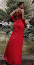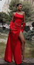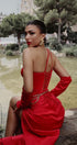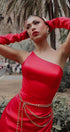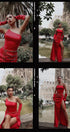 MAXI SKIRT AND CROP TOP SET LACEY 3 PARTS SATIN RED