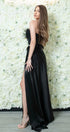 MAXI SKIRT AND CROP TOP SET MAISY SATIN GLITTER LACE FEATHERS BLACK