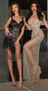 MINI DRESS DIAMOND RHINESTONE SATIN BLACK AND NUDE