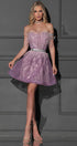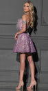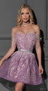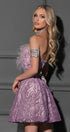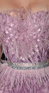 MINI SKIRT AND CROP TOP SET AUDREY GLITTER LACE FEATHERS LAVENDER