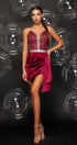 MINI SKIRT AND CROP TOP SET LUX GLITTER LACE RHINESTONE SATIN BURGUNDY