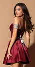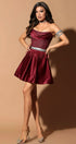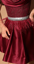MINI SKIRT AND CROP TOP SET VALLERY GLITTER LACE SATIN BURGUNDY