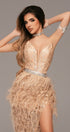 MAXI CONJUNTO TOP CON FALDA EDEN ЕNCAJE BRILLANTE PLUMAS DORADO
