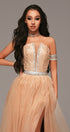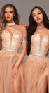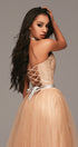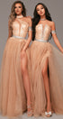 MAXI CONJUNTO TOP CON FALDA TIANA ЕNCAJE BRILLANTE PEDRERÍA BROCADO DE TUL DORADO