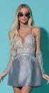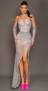 GUANTES ЕNCAJE BRILLANTE GRIS OSCURO
