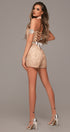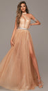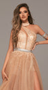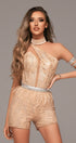 MAXI CONJUNTO TOP CON PANTALONES Y MANTELLO GABBIE ЕNCAJE BRILLANTE BROCADO DE TUL DORADO