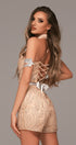 Los modelos LORRETI de Lora Lilova se dividen en dos partes: top (bustier) y falda o pantalón. Por lo tanto, debes elegir la talla de la parte superior e inferior.