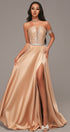 MAXI CONJUNTO TOP CON FALDA KATALINA ЕNCAJE BRILLANTE PEDRERÍA SATÍN DORADO