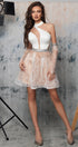 MINI CONJUNTO TOP CON FALDA ANTONIA SATÍN ЕNCAJE BRILLANTE BLANCO CON NUDE