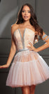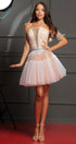 MINI CONJUNTO TOP CON FALDA AYA ЕNCAJE BRILLANTE PEDRERÍA BROCADO DE TUL BLANCO CON NUDE