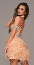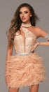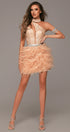 MINI CONJUNTO TOP CON FALDA MIRA ЕNCAJE BRILLANTE PLUMAS DORADO