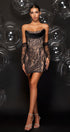 MINI CONJUNTO TOP CON FALDA DORY ЕNCAJE BRILLANTE SATÍN NEGRO