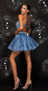 MINI CONJUNTO TOP CON FALDA PAOLINA ЕNCAJE BRILLANTE PEDRERÍA PLATEADO CON NUDE