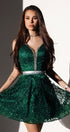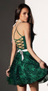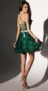 MINI CONJUNTO TOP CON FALDA RACHEL ЕNCAJE BRILLANTE PEDRERÍA VERDE OSCURO