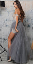 МAXI SET TOP CON PANTALONI E MANTELLO ELSIE PIZZO GLITTERATO BROCCATO DI TULLE ARGENTO CON NUDO