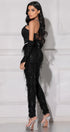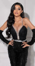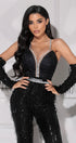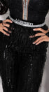 МAXI SET TOP CON PANTALONI ESTELLA PIZZO GLITTERATO PAILLETTES STRASS NERO