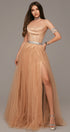 МAXI SET TOP CON GONNA DORIS PIZZO GLITTERATO RASO BROCCATO DI TULLE D'ORO