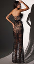 МAXI SET TOP CON GONNA MELODY PIZZO GLITTERATO PIUME NERO CON NUDO