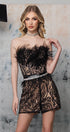 МINI SET TOP CON PANTALONI MANUELA PIZZO GLITTERATO PIUME NERO CON NUDO
