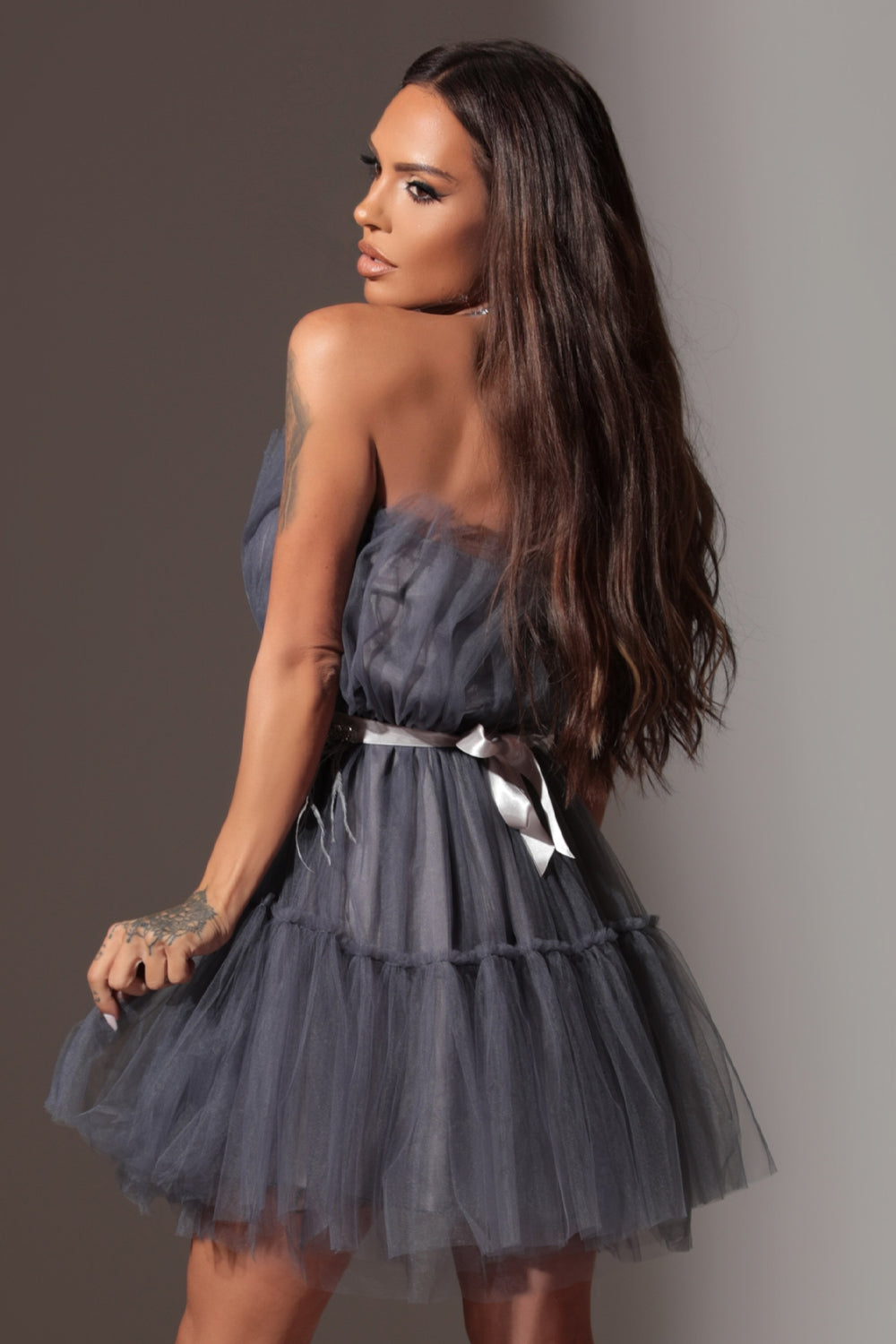 Моля, не поставяйте роклята в пералня с центрофуга или в сушилня, както и не прилагайте агресивно третиране, за да запазите нейния луксозен силует и качество.