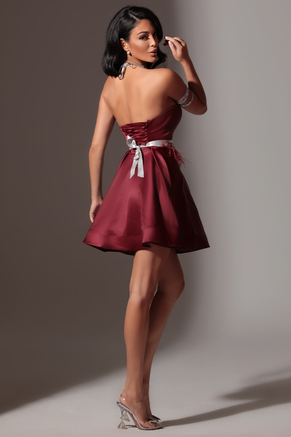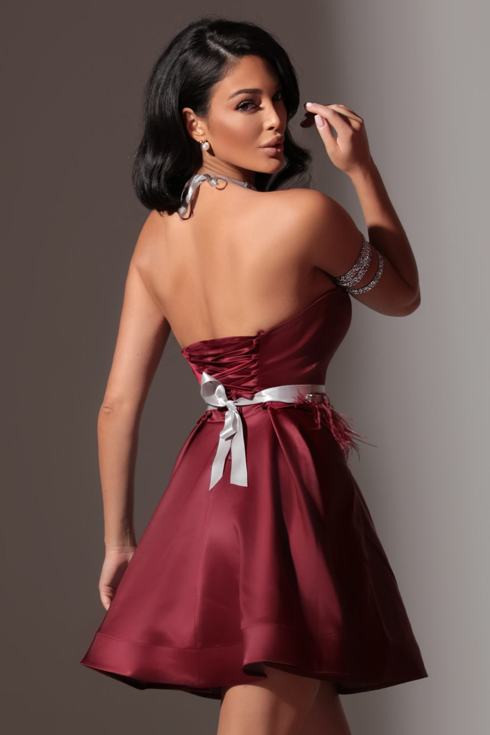 Моля, не поставяйте роклята в пералня с центрофуга или в сушилня, както и не прилагайте агресивно третиране, за да запазите нейния луксозен силует и качество.