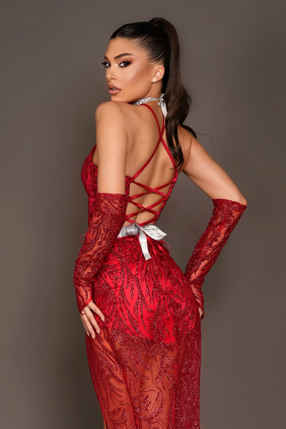 ЧИФТ РЪКАВИЦИ ДАНТЕЛА ГЛИТЕР ЧЕРВЕН