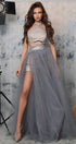 ДЪЛЪГ СЕТ ТОП С ПАНТАЛОН И ШЛЕЙФ RUSLANA ДАНТЕЛА ГЛИТЕР КАМЪНИ ТЮЛ БРОКАТ СРЕБЪРЕН С НЮД