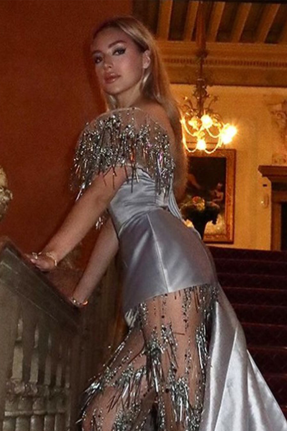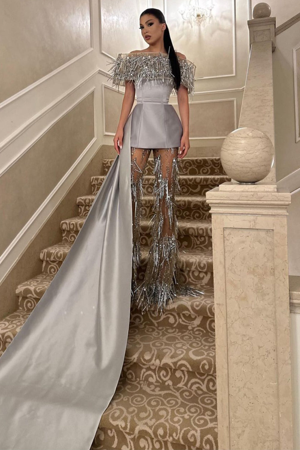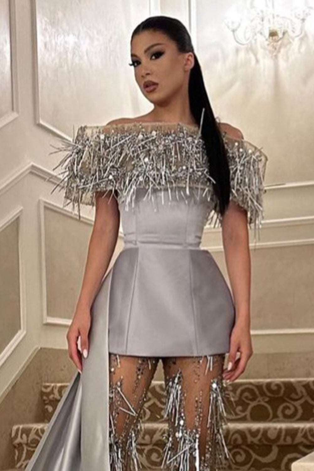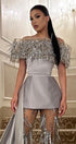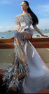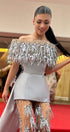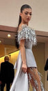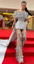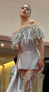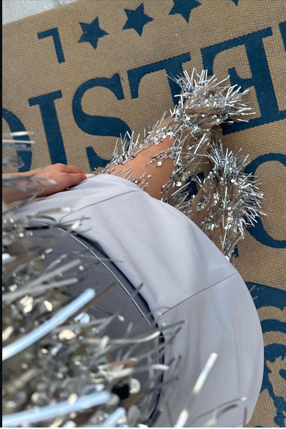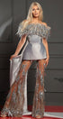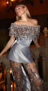 ДЪЛЪГ СЕТ ТОП С ПАНТАЛОН И ПОЛА STARLIGHT ПАЙЕТИ САТЕН СРЕБЪРЕН