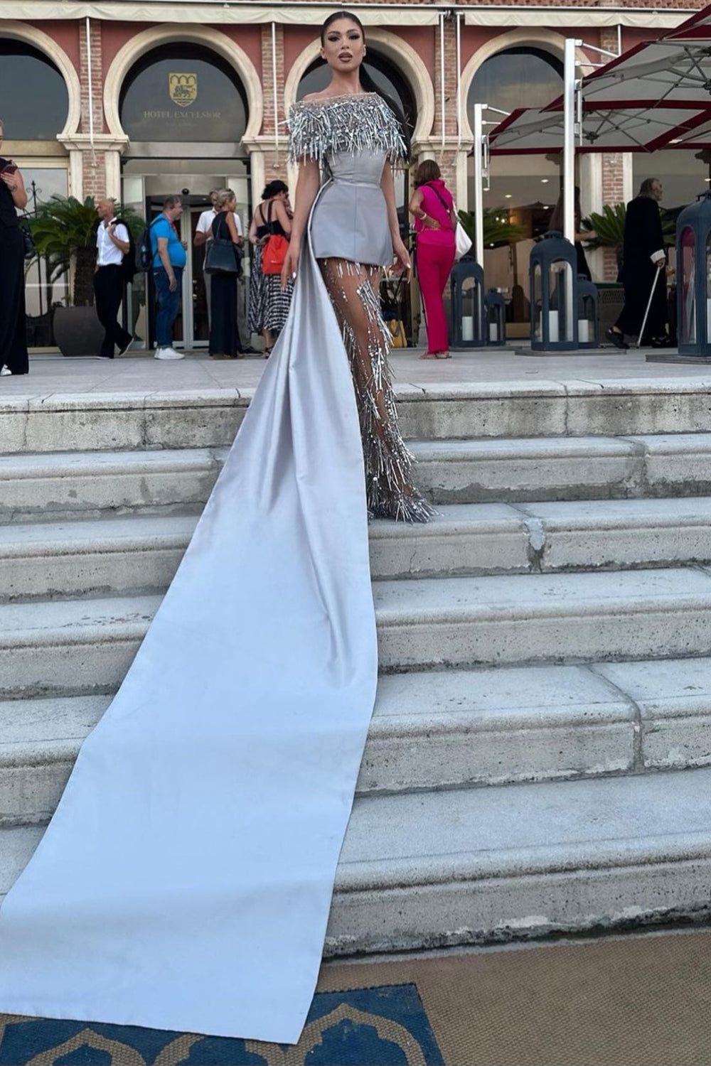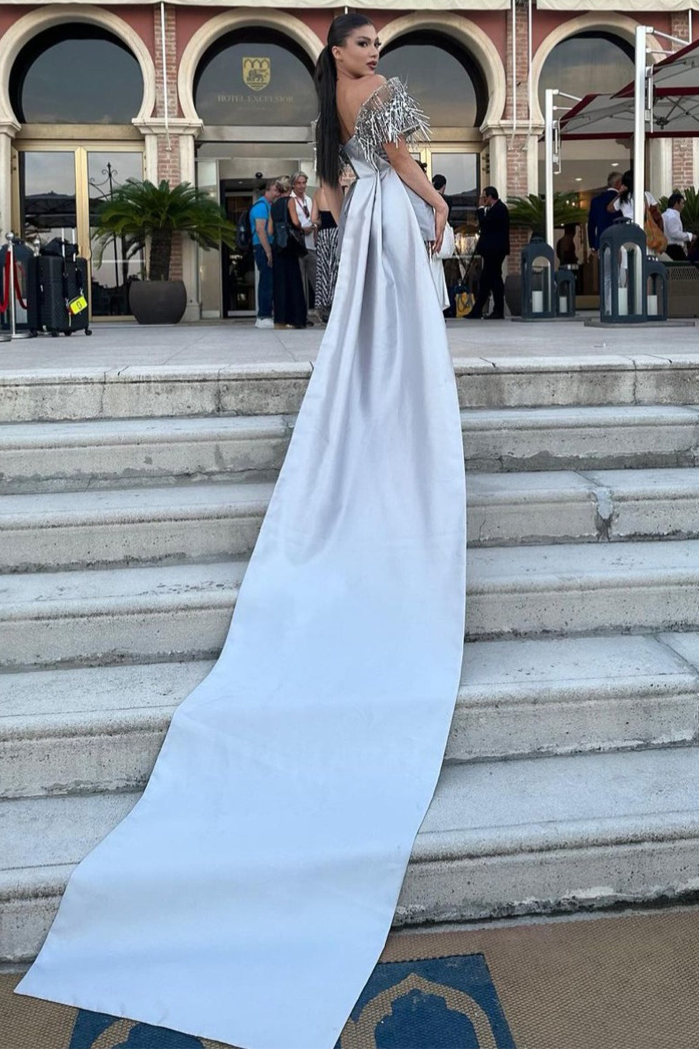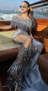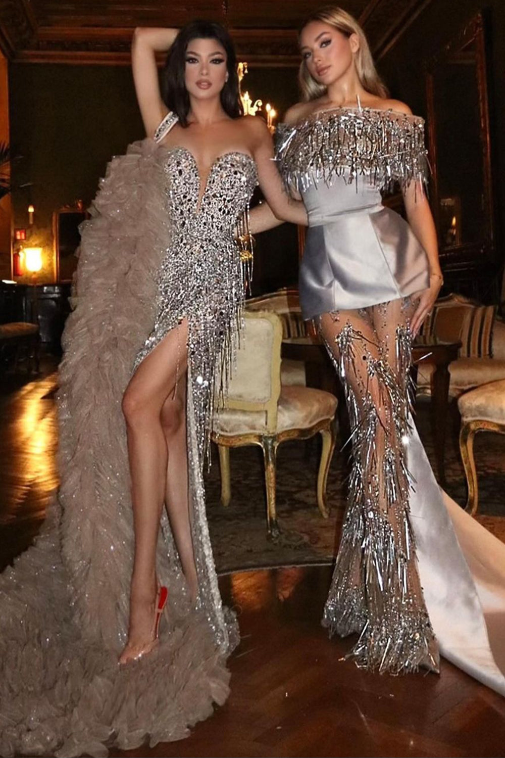 ДЪЛЪГ СЕТ ТОП С ПАНТАЛОН И ПОЛА STARLIGHT ПАЙЕТИ САТЕН СРЕБЪРЕН